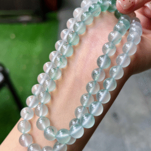 Icy Vibrant Green Round Bead Jadeite Bracelet