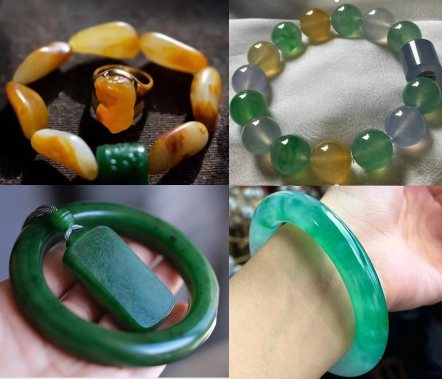 Nephrite: Nephrite’s aesthetic, particularly Hotan jade from China’s Xinjiang region, is more understated and traditional. Its appeal lies in its subtle, internal luster, fine grain, and rich, creamy texture. Unlike Jadeite, it should not be too translucent or glossy. Nephrite embodies a cultural heritage that values warmth, maturity, and subtlety, often appreciated by older, more experienced collectors. It is not only worn but also handled for its tactile qualities, categorizing it under traditional Chinese scholarly objects (文玩).