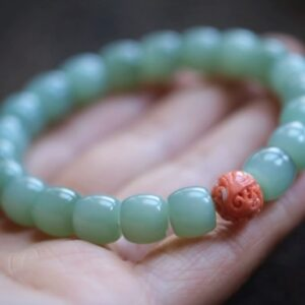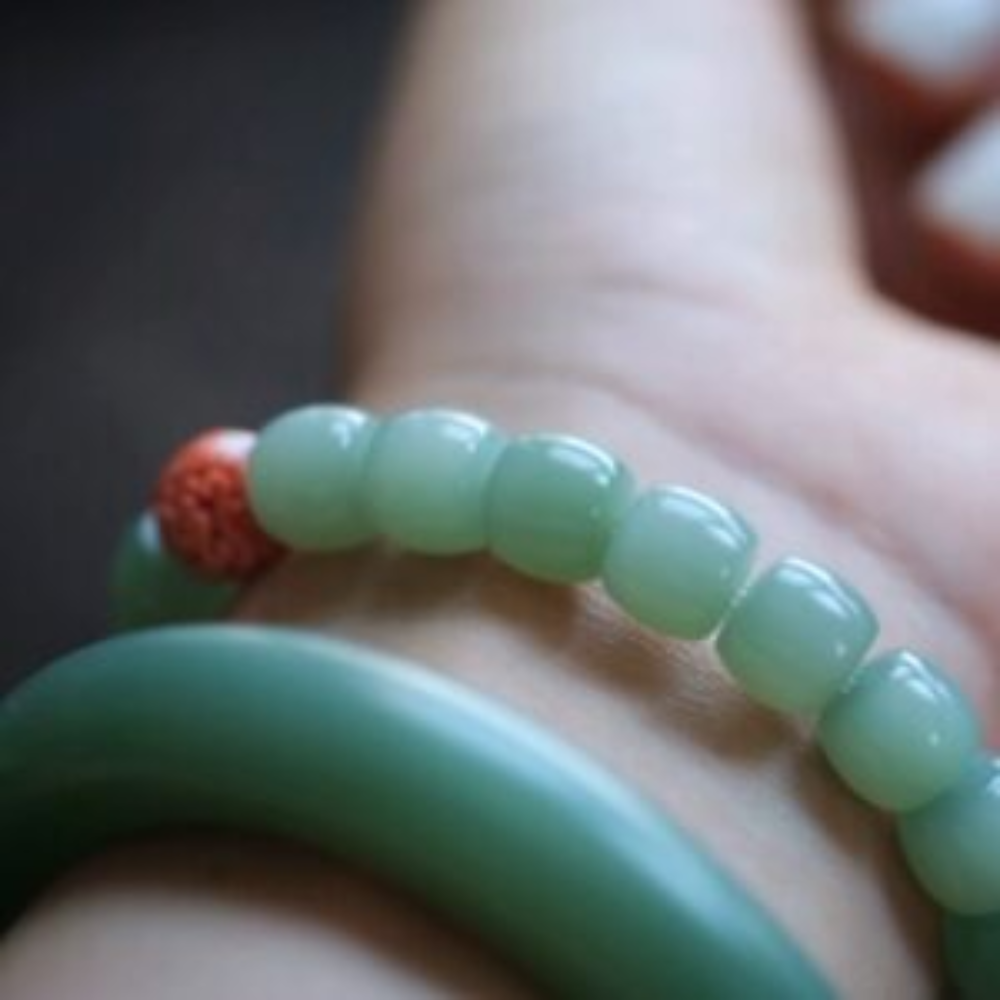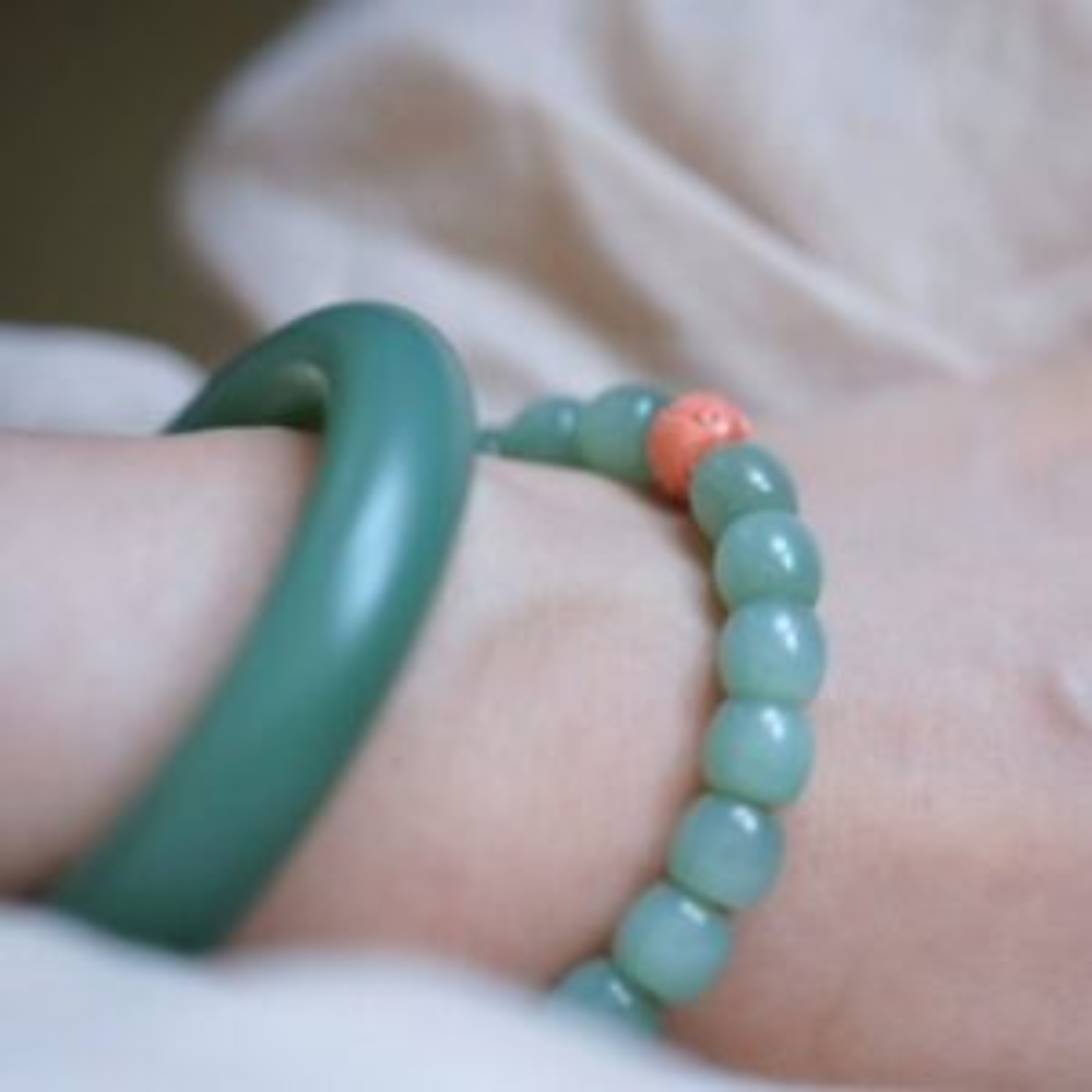 Quality Description:Rare jelly-like mountain nephrite material from Russia, in a unique soft petal teal color. This small-sized bead strand exudes fluorescence and embodies an old-world charm with exceptional fineness and a structure that remains invisible under light. Its petite size makes it ideal for stacking with other bracelets or wearing alone, lending a fresh and delicate aesthetic. Pairing beautifully with a pink carved coral bead enhances its allure.