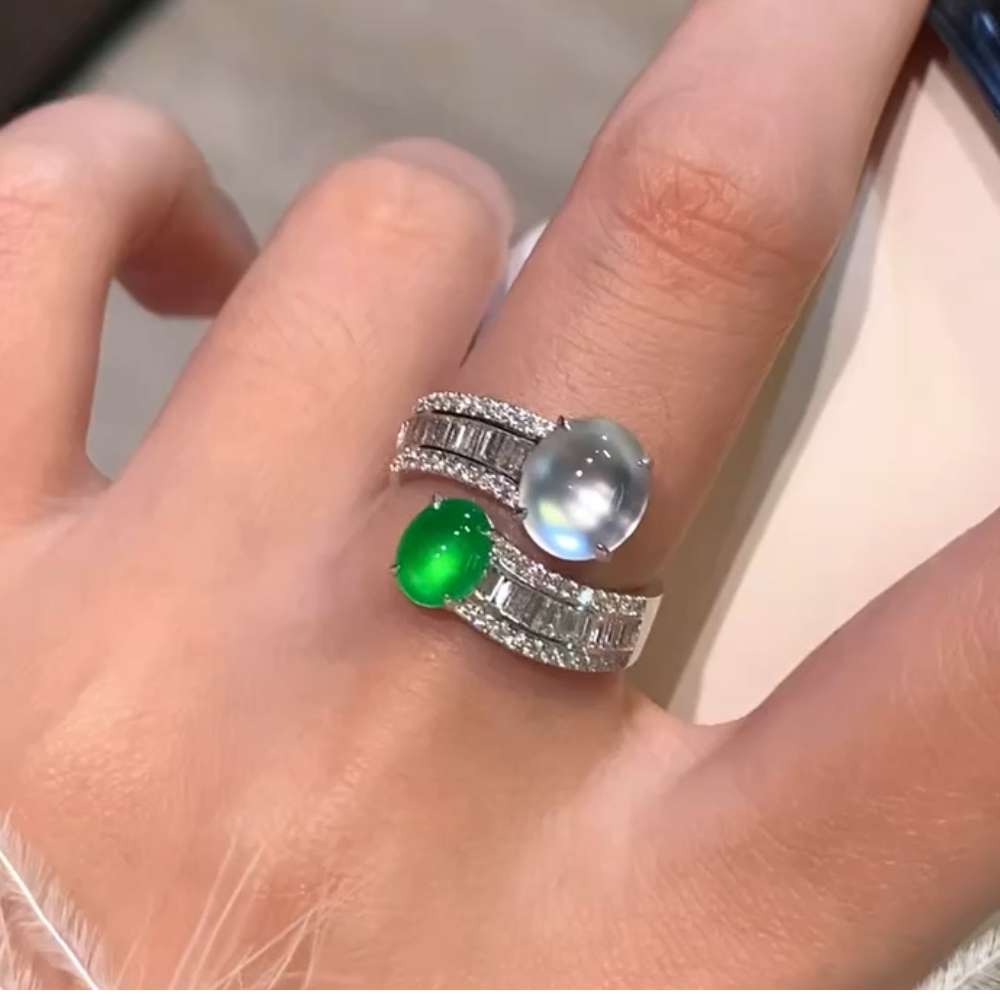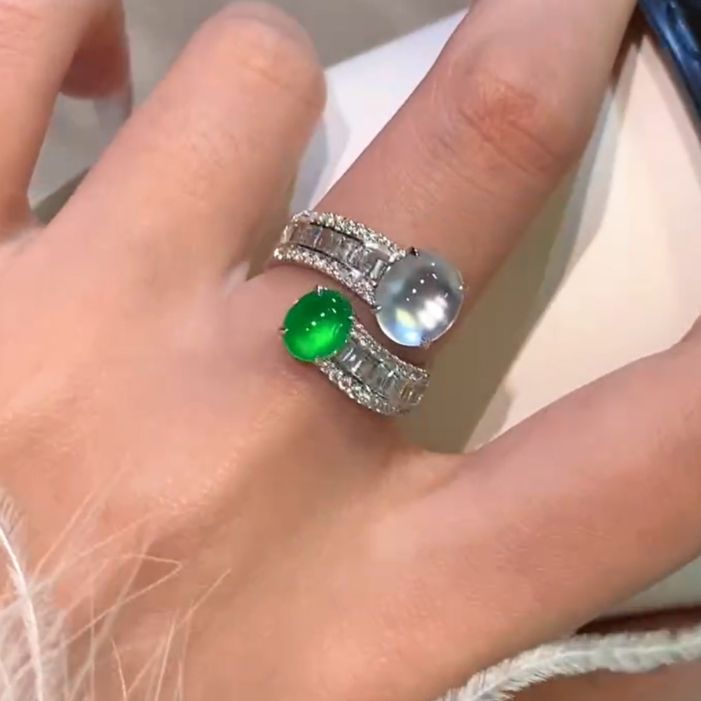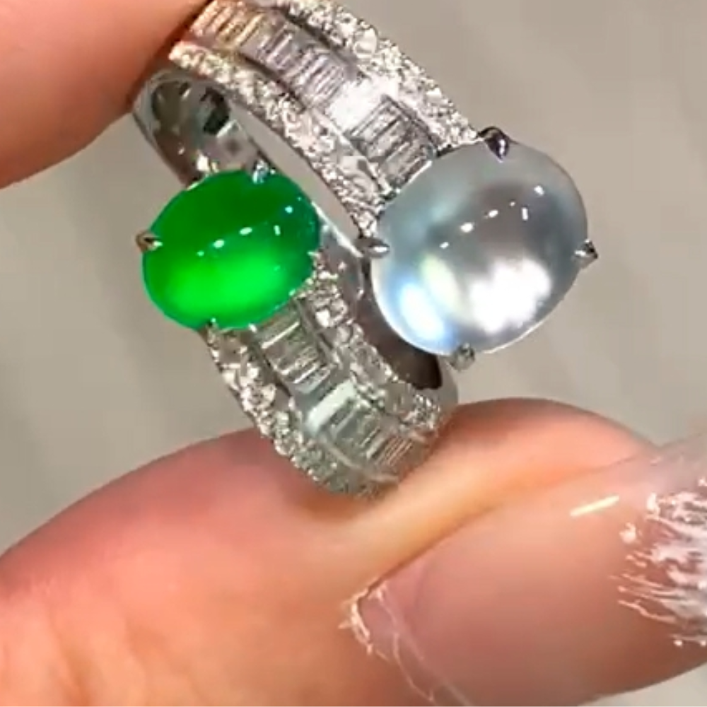 “Dual Serenity” Green and White Jadeite Ring