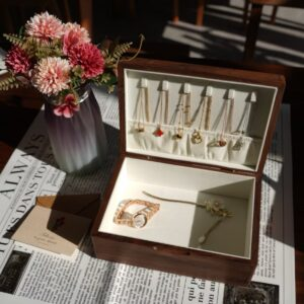 Vintage Black Walnut Jewelry Box Handmade Chinese Su Embroidery Exclusive Hermit Jade Design A Luxury Home for Your Jade The perfect gift for someone special or a treat for yourself.