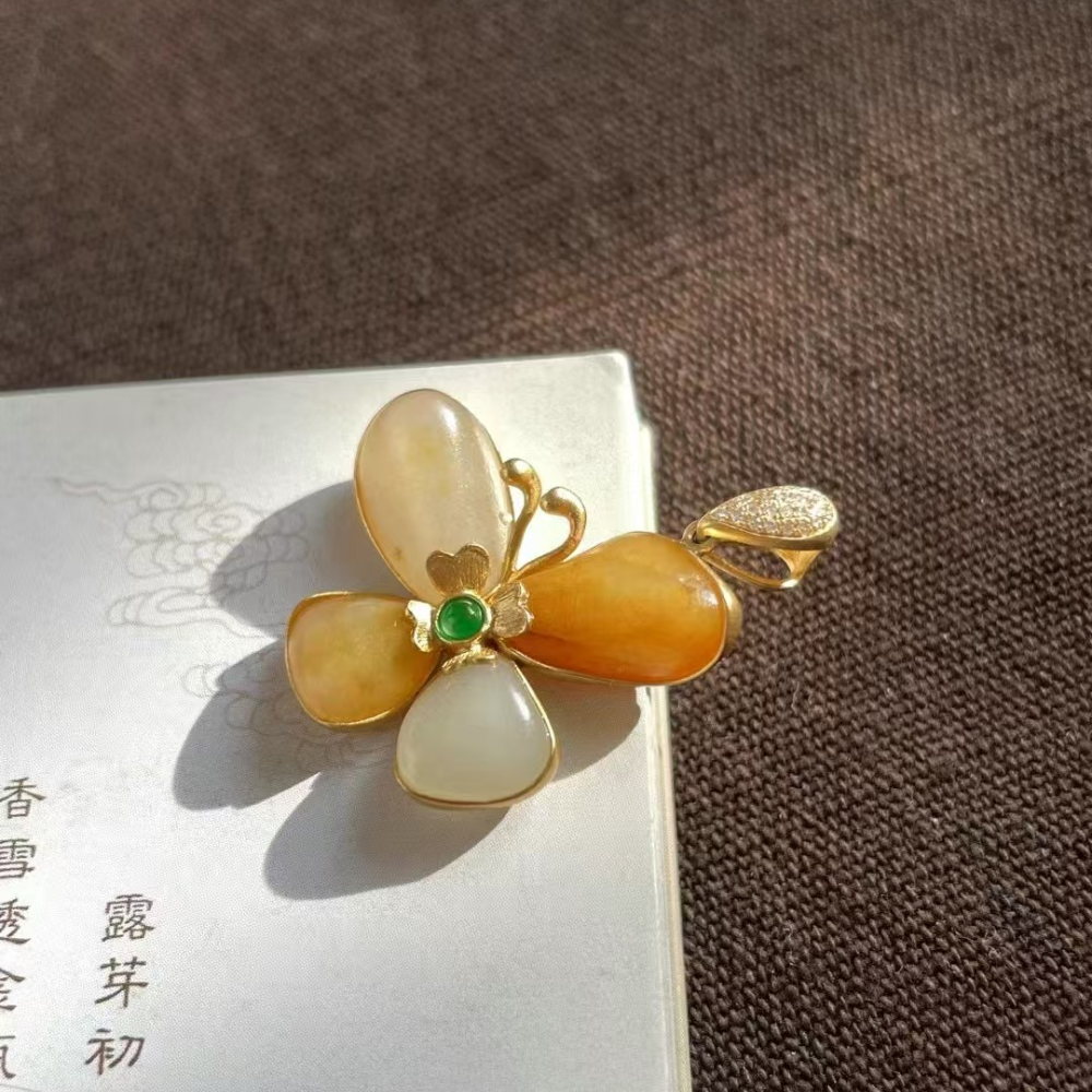 Crafted from 4 exquisite single-seed nephrite jade pieces