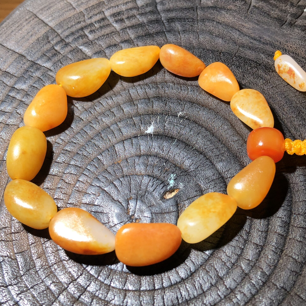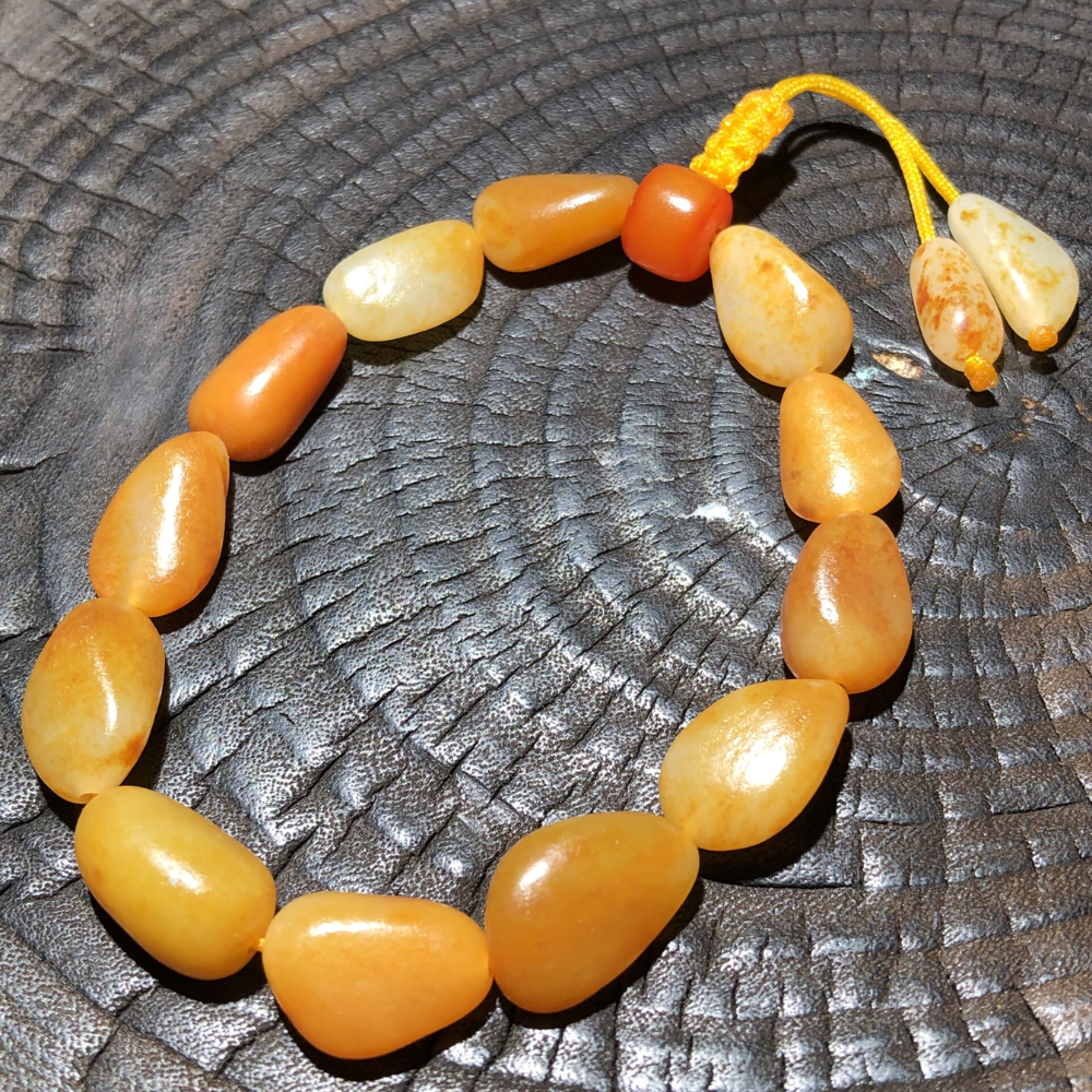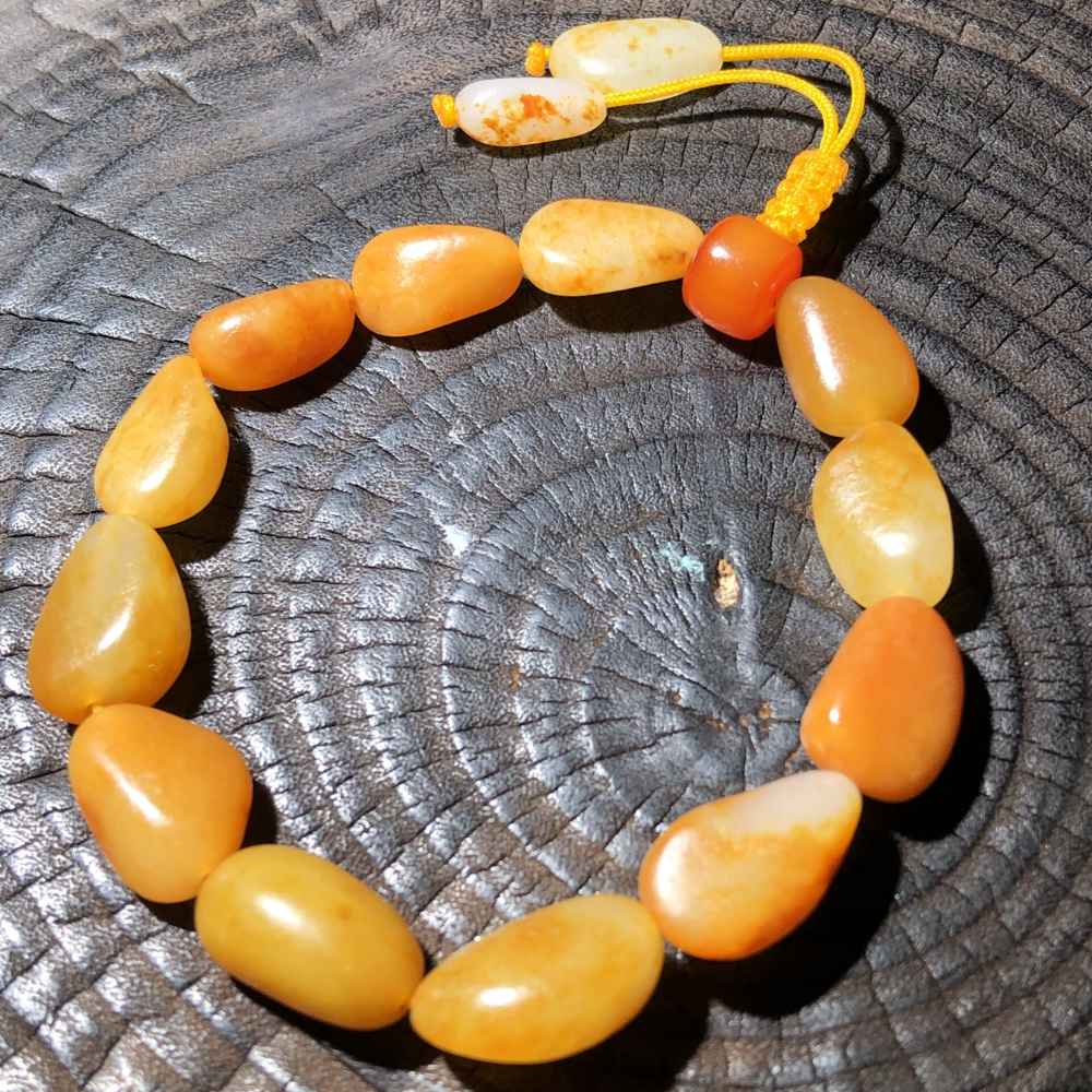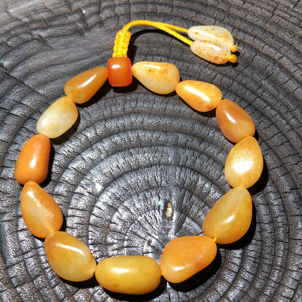 - Description: This Lonely Stone bracelet is crafted from high-quality, top-color single-seed nephrite, featuring flawless, unmodified original stones. Each bead boasts a perfect shape, consistent color, and exceptional texture, radiating a lustrous brilliance. Months to a year are dedicated to sourcing these stones, ensuring consistent high quality. This bracelet beautifully adorns the wrist, enhancing your style with its vibrant hues and captivating charm. With a smooth, natural finish and remarkable oiliness, this piece reflects the true beauty of its origins from the Yurong Kasha River—a genuine treasure of nature. Please note: This bracelet is designed for women only and may be too small for men.
