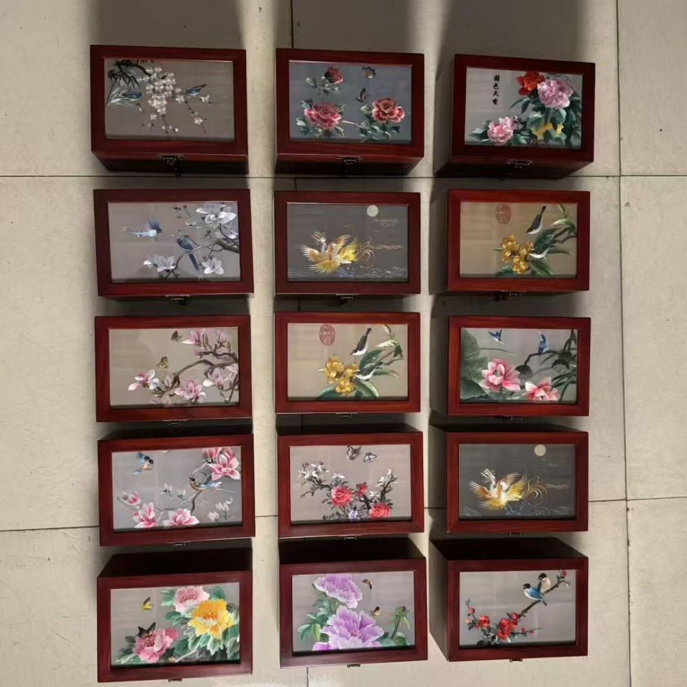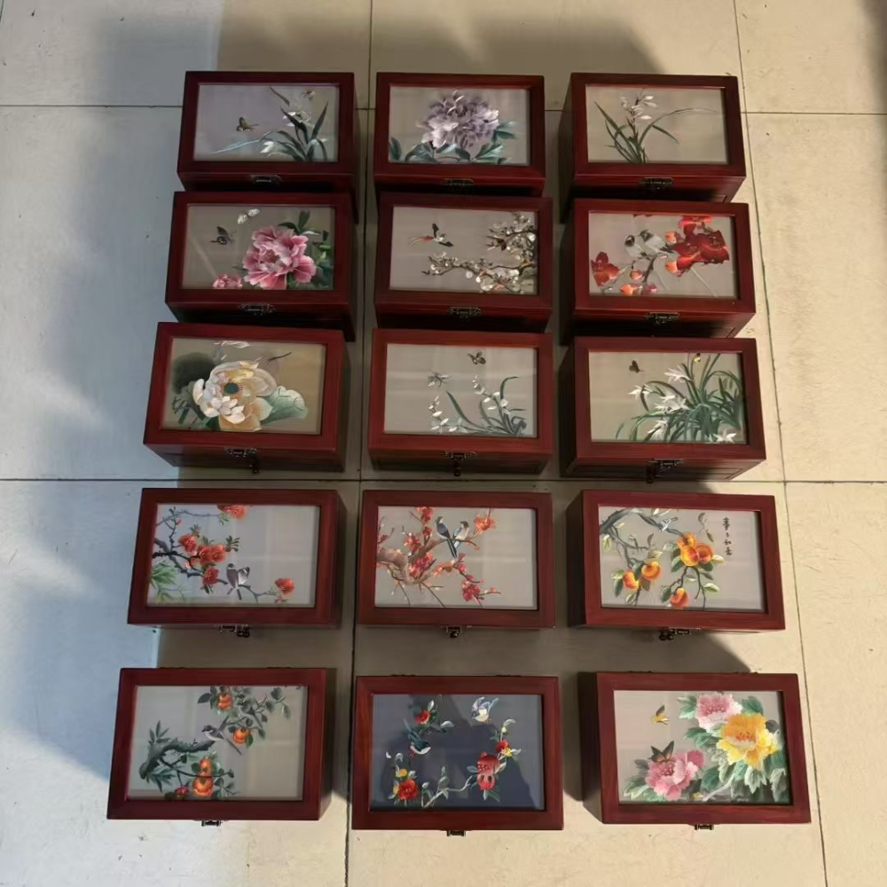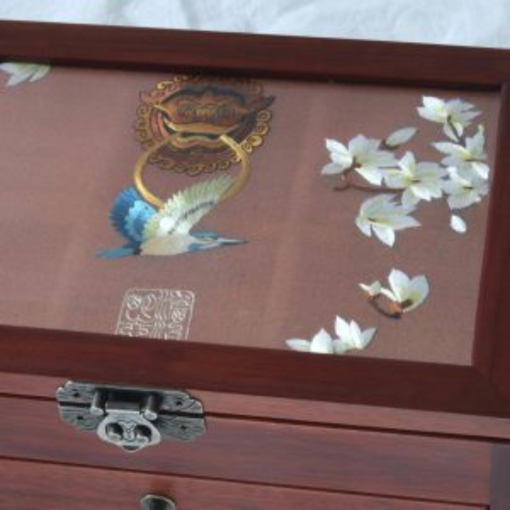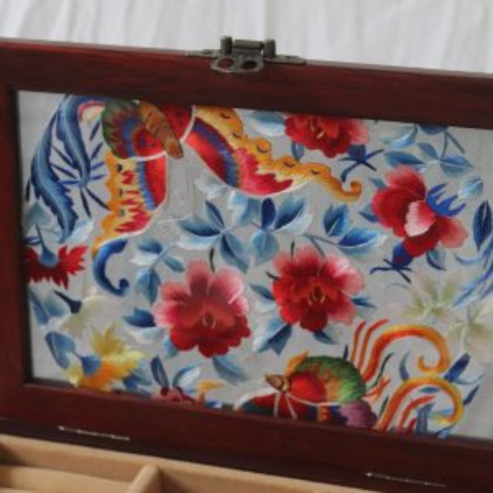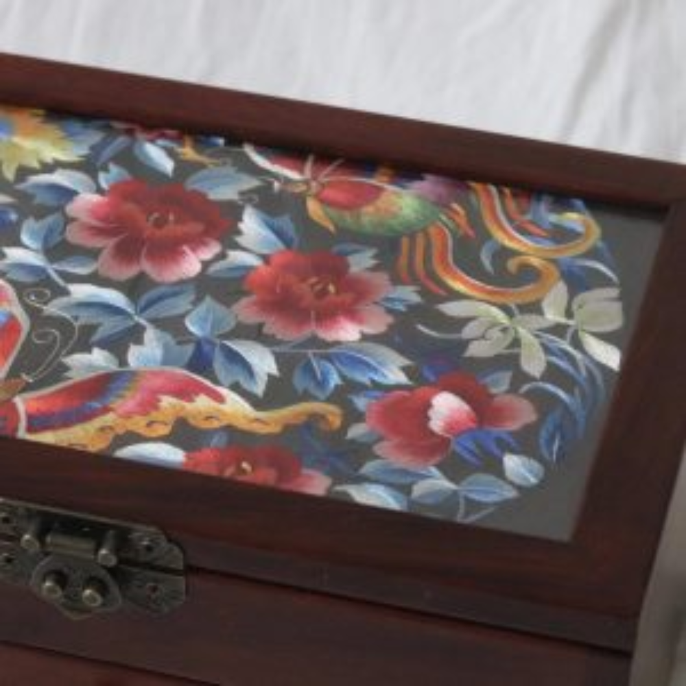 Silk Embroidered Huali Wood Jewelry Box